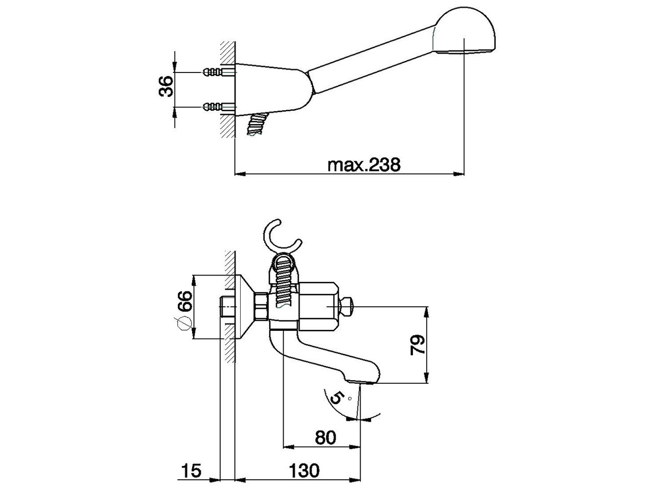Bañera con duplex,soporte duchita articulado mural,duchita una función Globo Ø 63 mm de ABS,flexible de Latón 150 cm,sin manetas