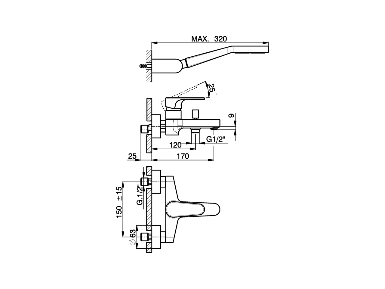 Bañera monomando con duplex,soporte duchita articulado mural,duchita una función Ø100 mm de ABS,flexible liso SILVERFLEX 150 cm