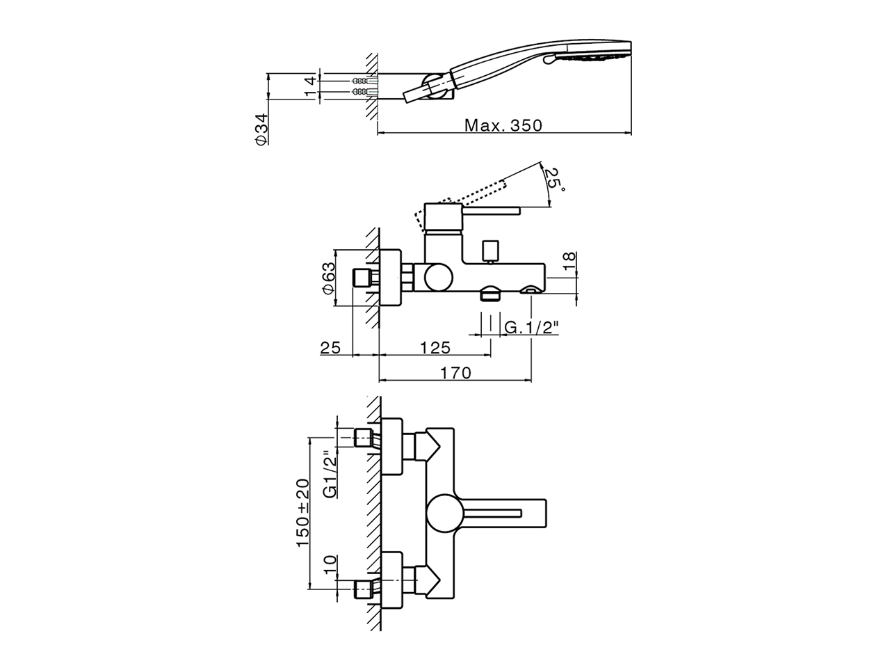 Bañera monomando con duplex,soporte duchita articulado mural,duchita 3 funciones,flexible PVC 150 cm