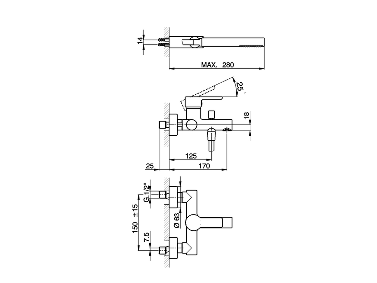 Bañera monomando con duplex,soporte duchita articulado mural,duchita una función minimalista Ø 26 mm de ABS,flexible de Latón 150 cm