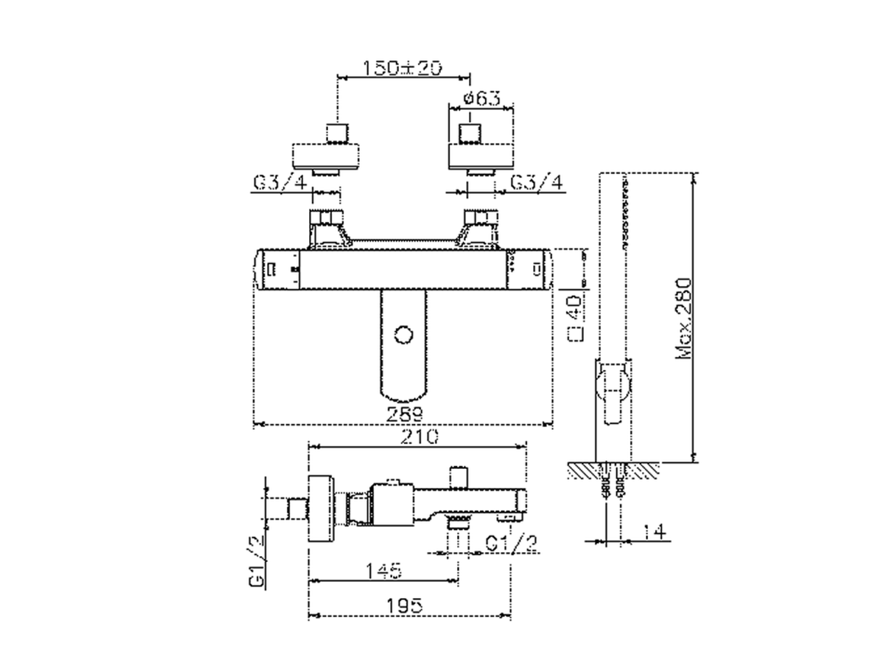 Bañera termostática con duplex,soporte duchita articulado mural,duchita una función minimalista Ø 26 mmde ABS,flexible liso SILVERFLEX 150 cm