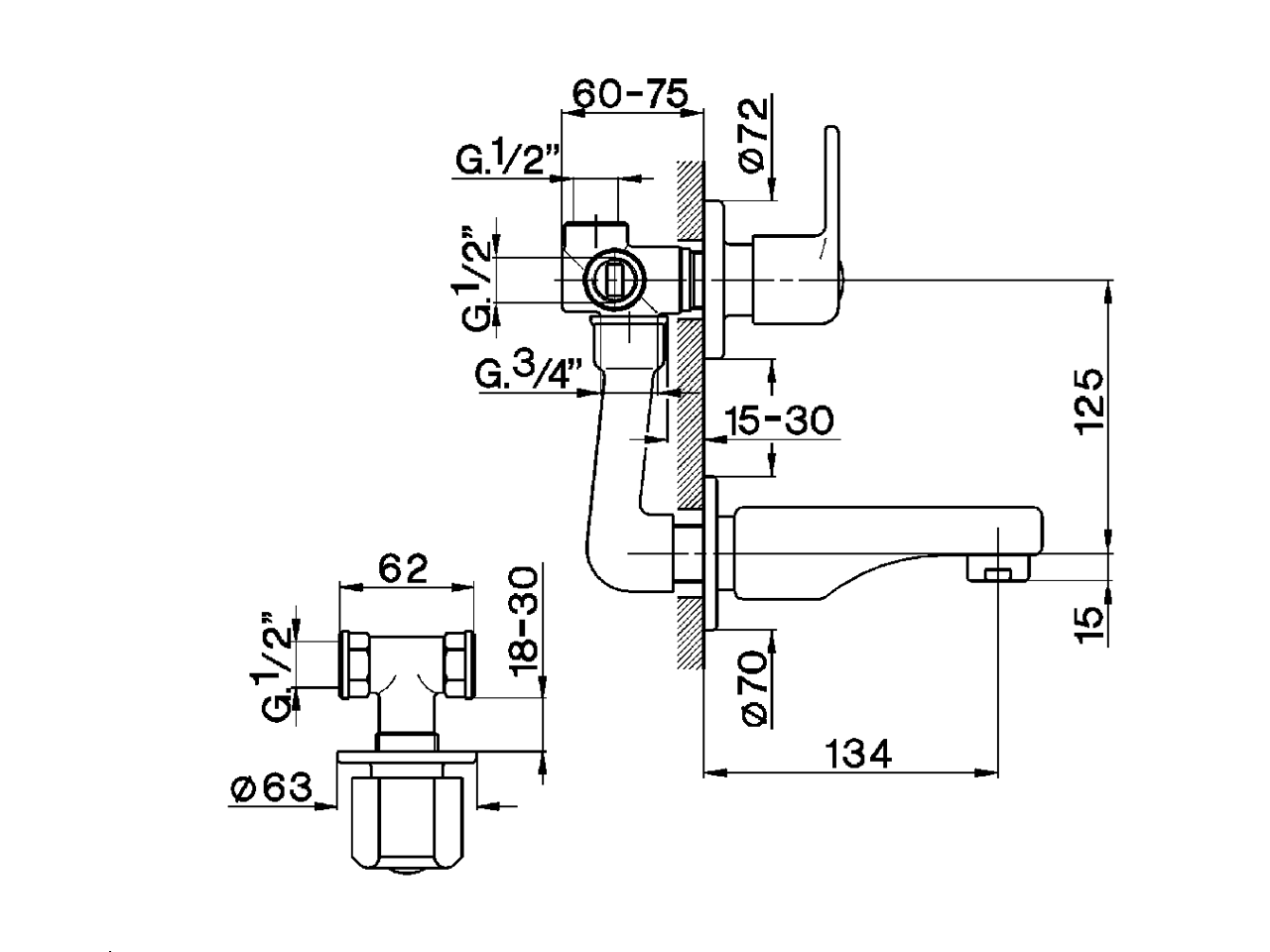 Baño/ducha empotrado 4 agujeros EVA_EV000210