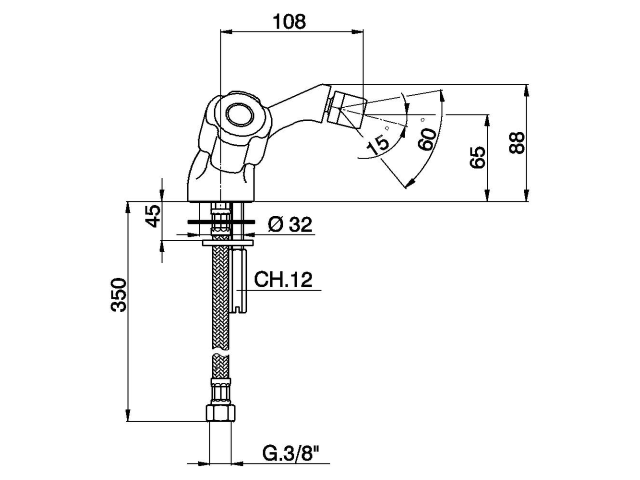 Bidé,sin desagüe automático,latiguillos acero G.3/8",sin manetas