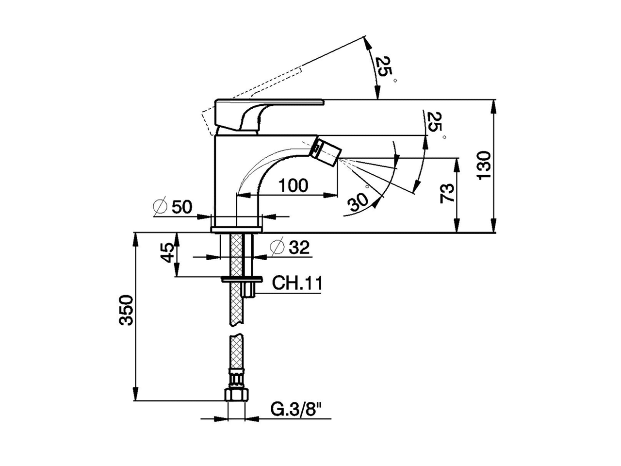 Bidé monomando,sin desagüe automático,latiguillos acero G.3/8"