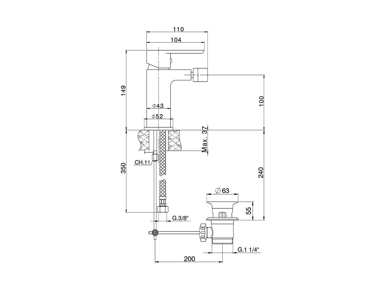 Bidé monomando EnergySave,con desagüe automático 1"1/4,latiguillos acero G.3/8"