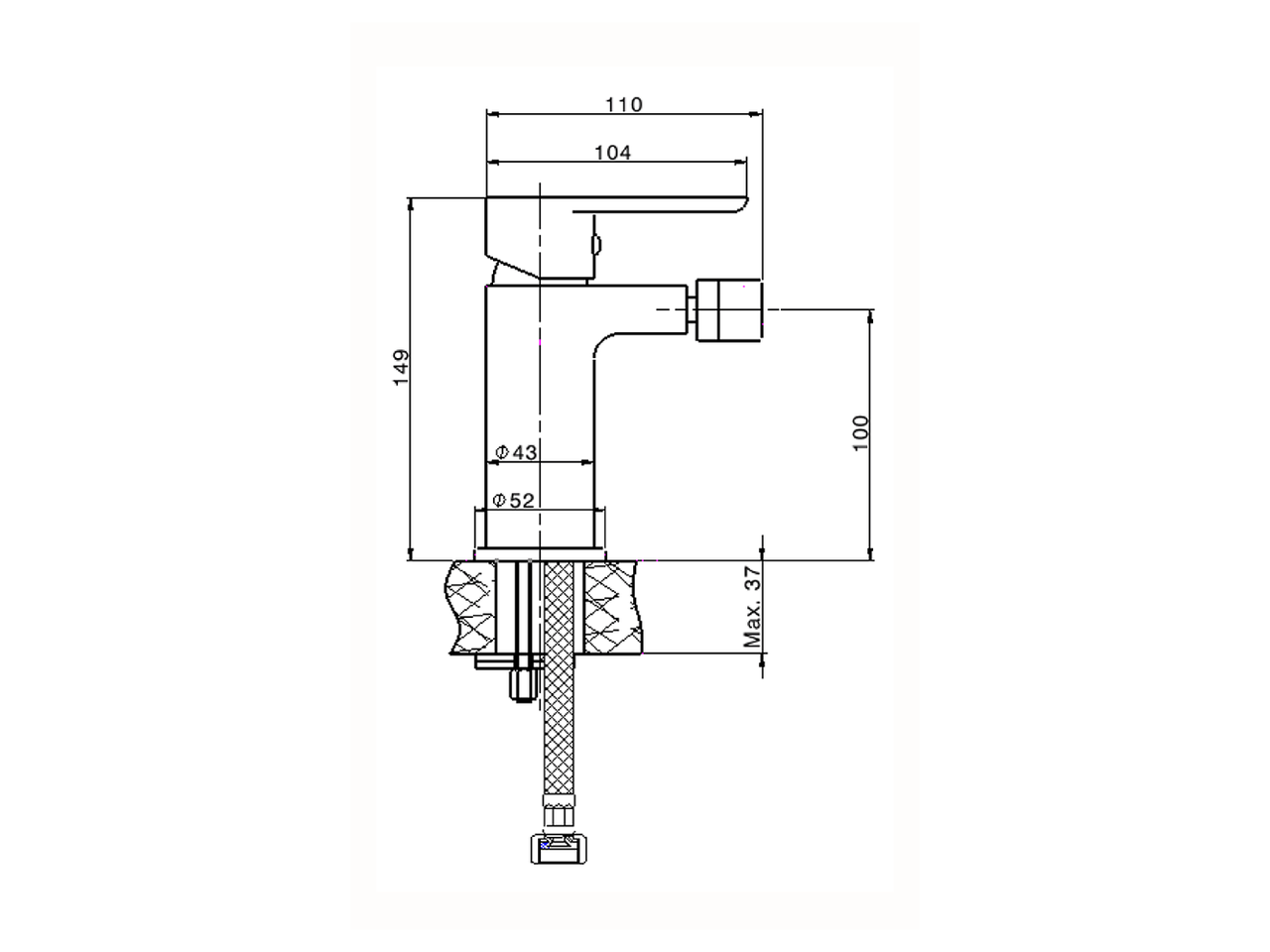 Bidé monomando,sin desagüe automático,latiguillos acero G.3/8"