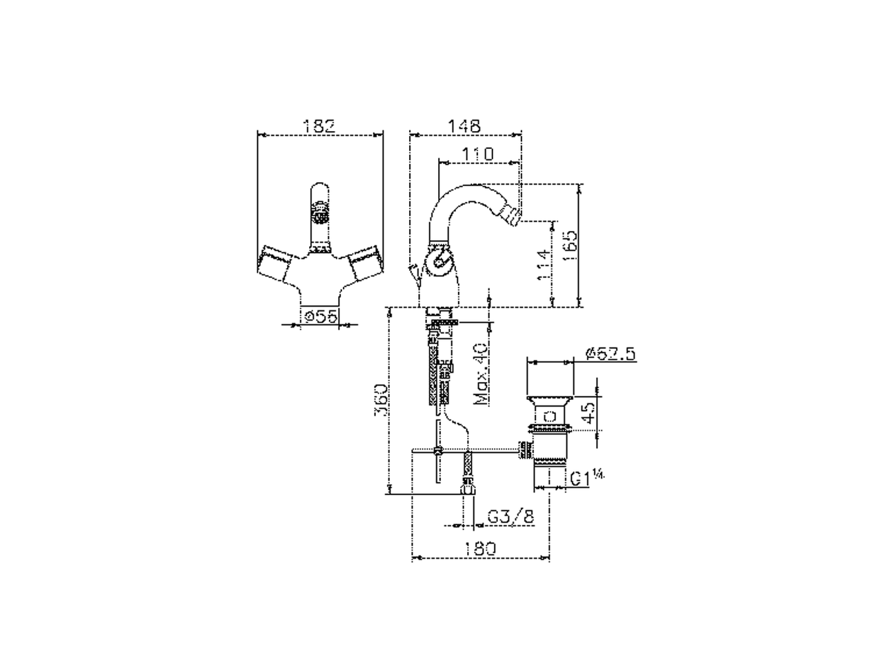 Bidé termostático,con desagüe automático 1" 1/4