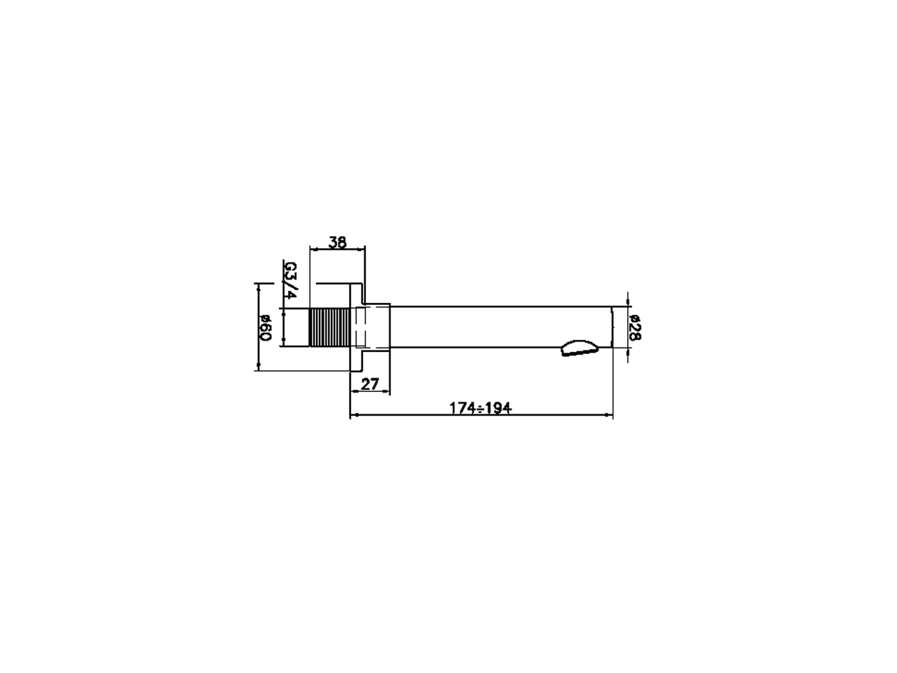 Caño de erogación,L.194 mm,conexión 3/4" M