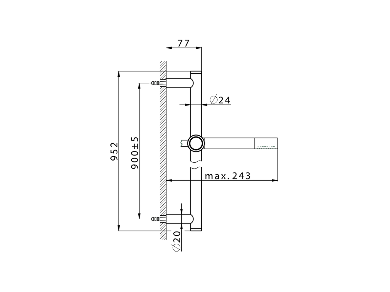 Conjunto ducha barra corrediza,barra 90 cm latón Ø24 con soporte corredizo Latón,duchita una función minimal Ø24mm de Latón,flexible liso SUPREME 150 cm