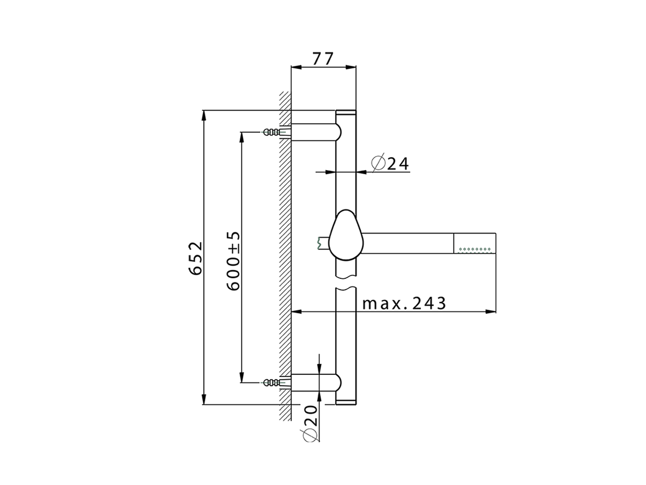 Conjunto ducha barra corrediza,barra 60 cm latón Ø24 con soporte corredizo Latón,duchita una función minimal Ø24mm de Latón,flexible liso SUPREME 150 cm