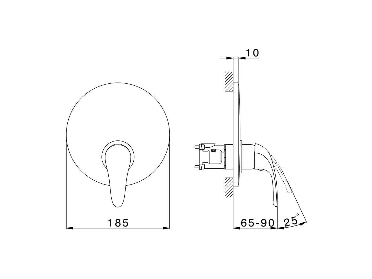 Concealed parts required for installation.