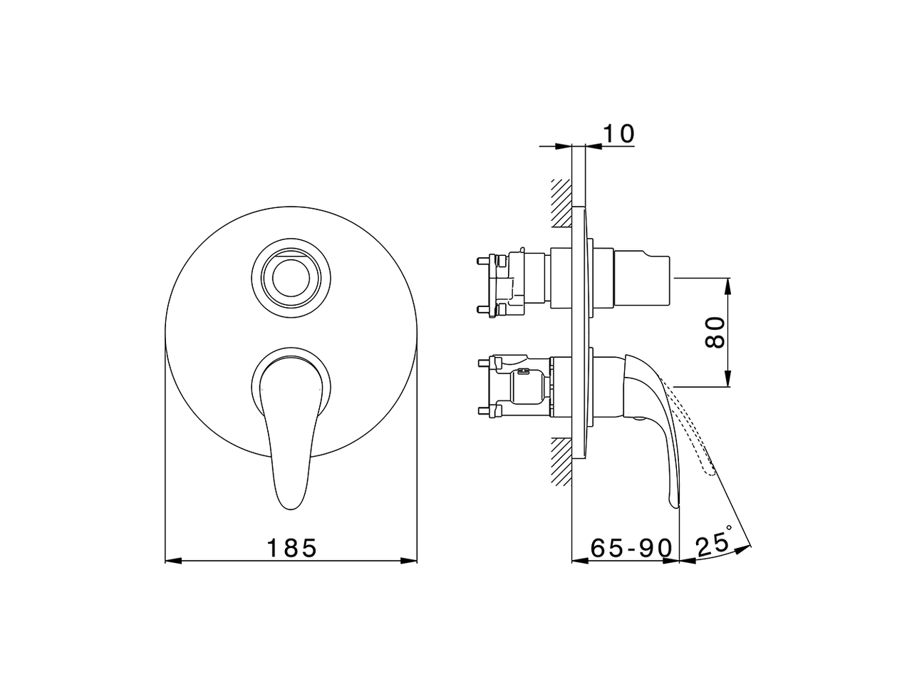 Conjunto Monomando para One-Box,con desviador 2-3 salidas,profundidad mínima de instalación 67 mm,sin parte empotrada,para art.