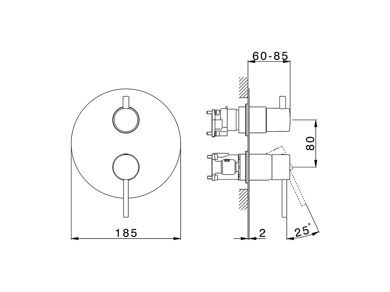 Conjunto Monomando para One-Box,con desviador 2-3 salidas,profundidad mínima de instalación 67 mm,sin parte empotrada,para art.