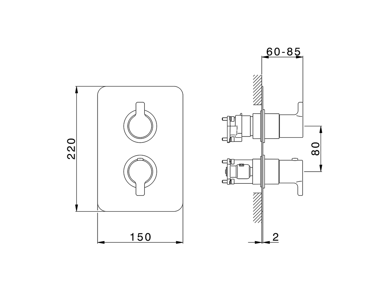 Conjunto Termostático para One-Box,con deviastop 1-2-3 salidas,profundidad mínima de instalación 67 mm,sin parte empotrada,para art.
