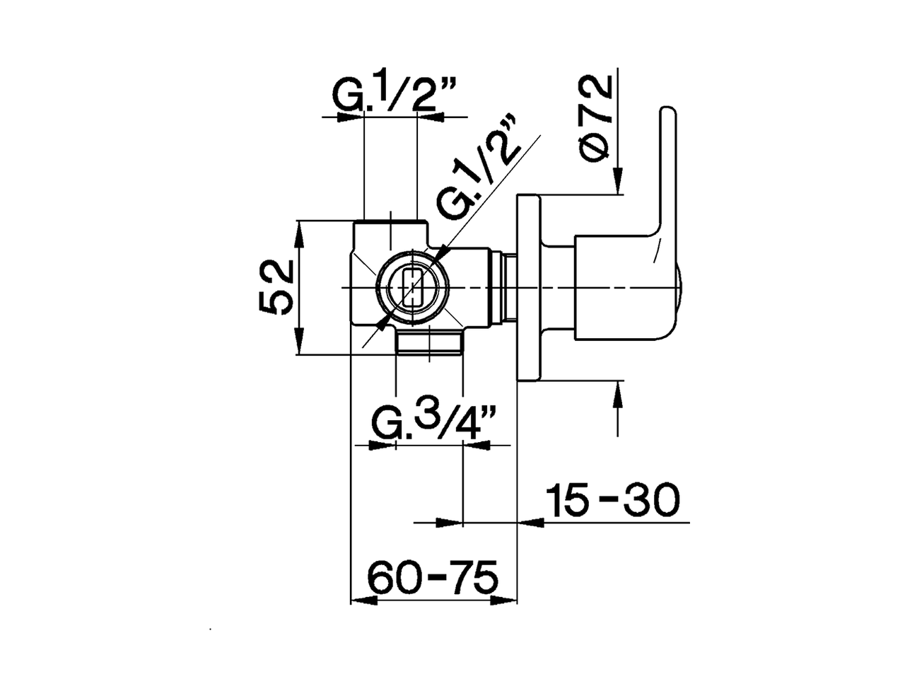 Desviador empotrado 2 salidas,salidas 1/2" M y 3/4" F