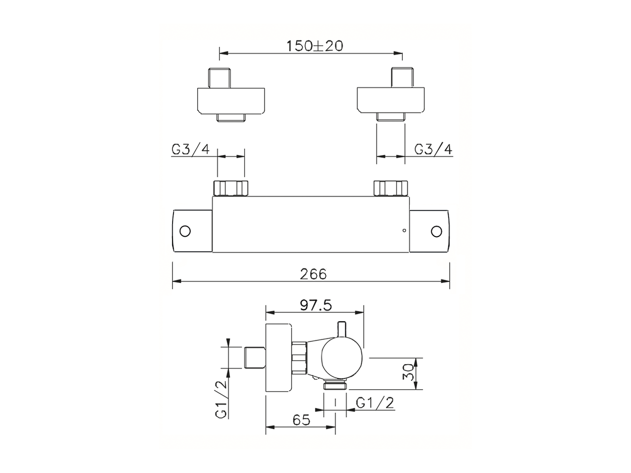 Ducha termostática,sin conjunto ducha,conexión para flexible 1/2"M