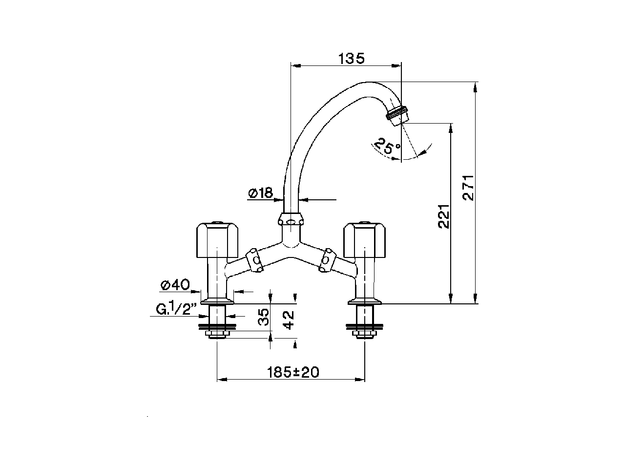Fregadero 2 agujeros,sin desagüe automático,sin manetas,caño giratorio