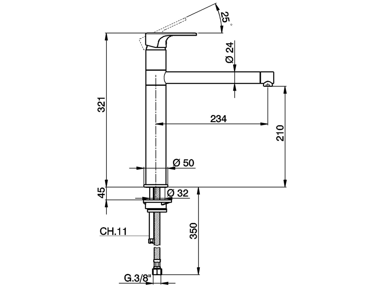 Fregadero monomando,caño giratorio,latiguillos acero G.3/8"