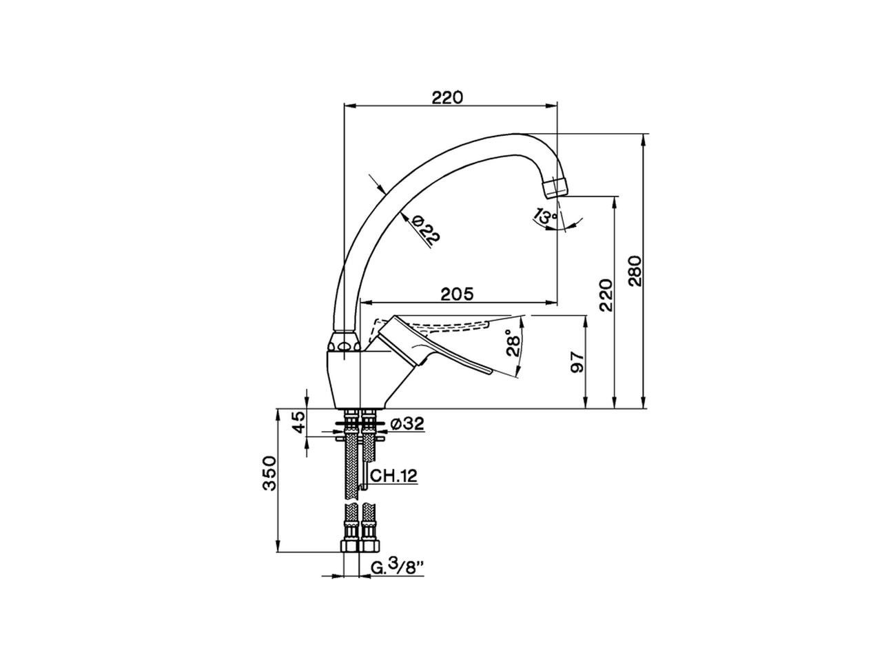 Fregadero monomando,caño giratorio,latiguillos acero G.3/8"