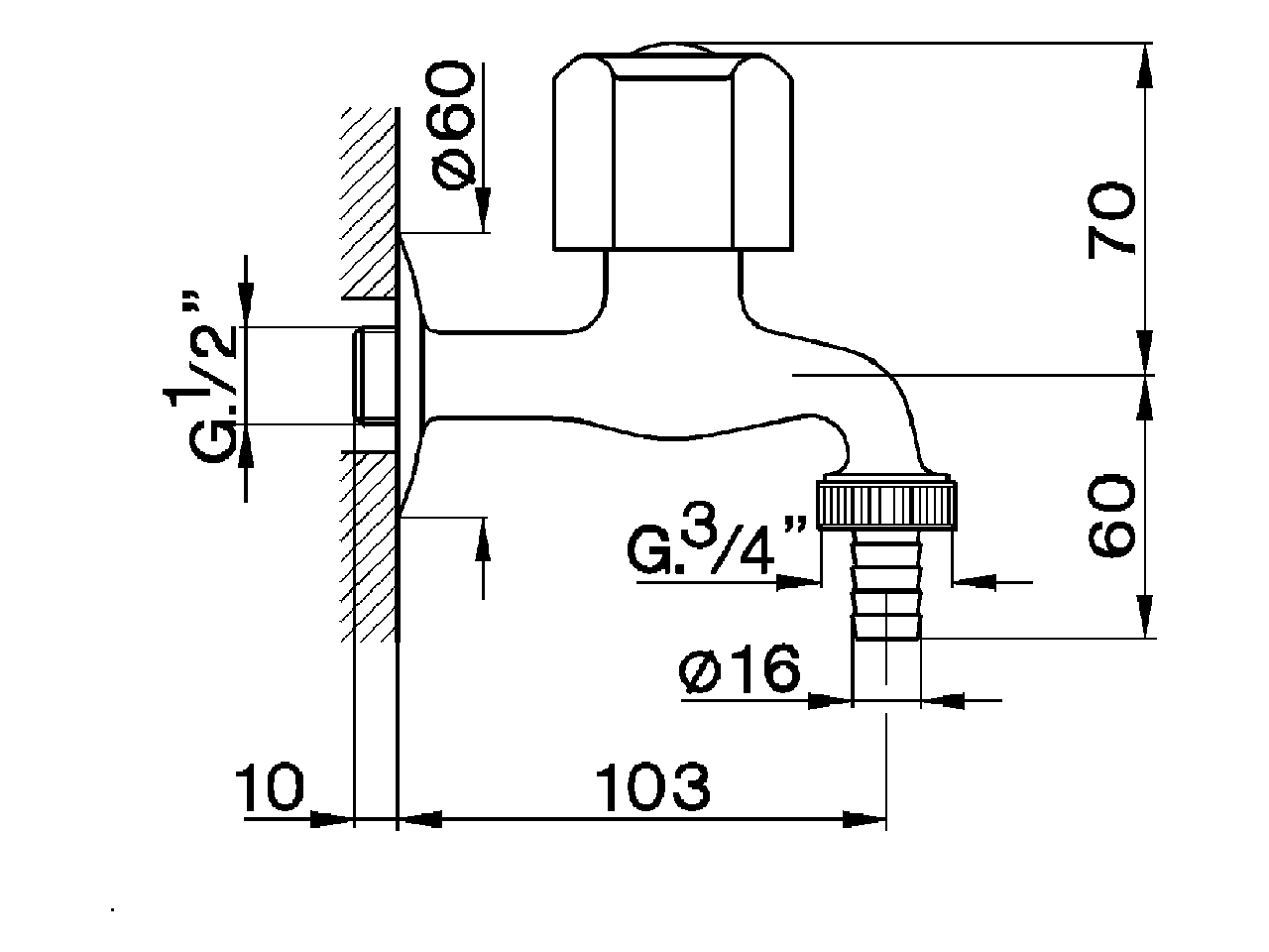 Grifo de un sólo agua de pared,con enganche goma lavadora,sin maneta