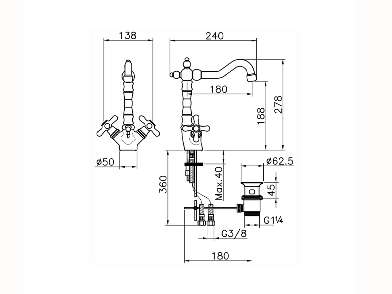 Lavabo,con desagüe automático 1"1/4,caño giratorio,latiguillos acero G.3/8"