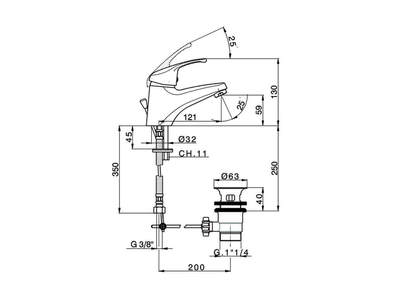 Lavabo monomando EnergySave,con desagüe automático 1"1/4,latiguillos acero G.3/8"