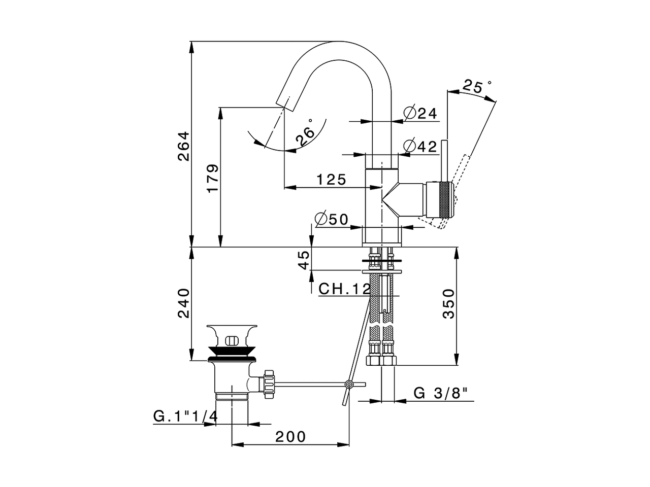 Lavabo monomando EnergySave,caño giratorio,con desagüe automático 1" 1/4,latiguillos acero G.3/8"