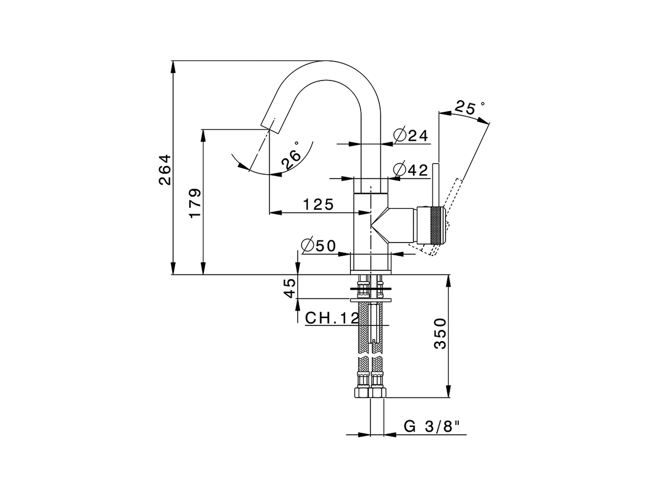Lavabo monomando EnergySave,sin desagüe automático,latiguillos acero G.3/8"