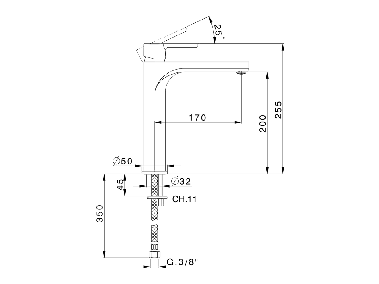 Lavabo monomando EnergySave,sin desagüe automático,latiguillos acero G.3/8"