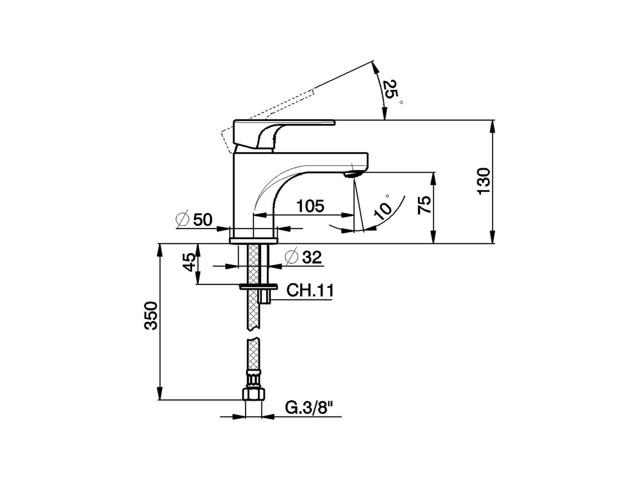 Lavabo monomando EnergySave,sin desagüe automático,latiguillos acero G.3/8"