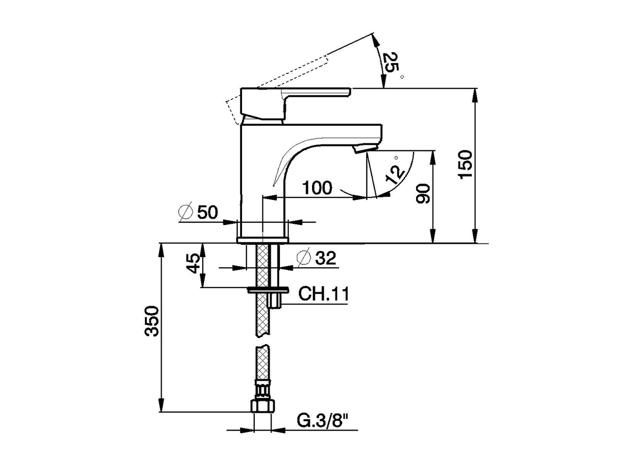 Lavabo monomando large EnergySave,sin desagüe automático,latiguillos acero G.3/8"