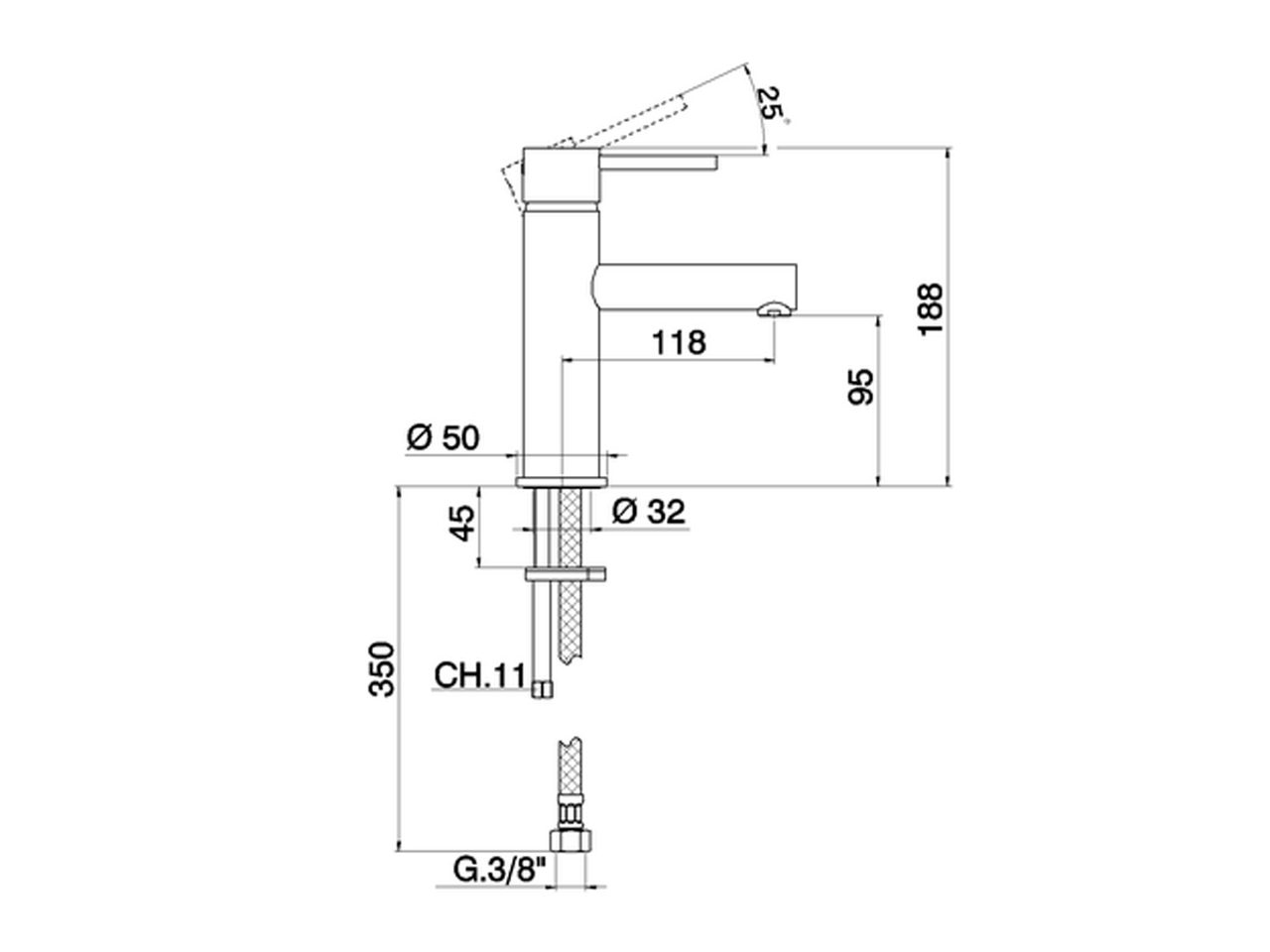 Lavabo monomando large,sin desagüe automático,latiguillos acero G.3/8"