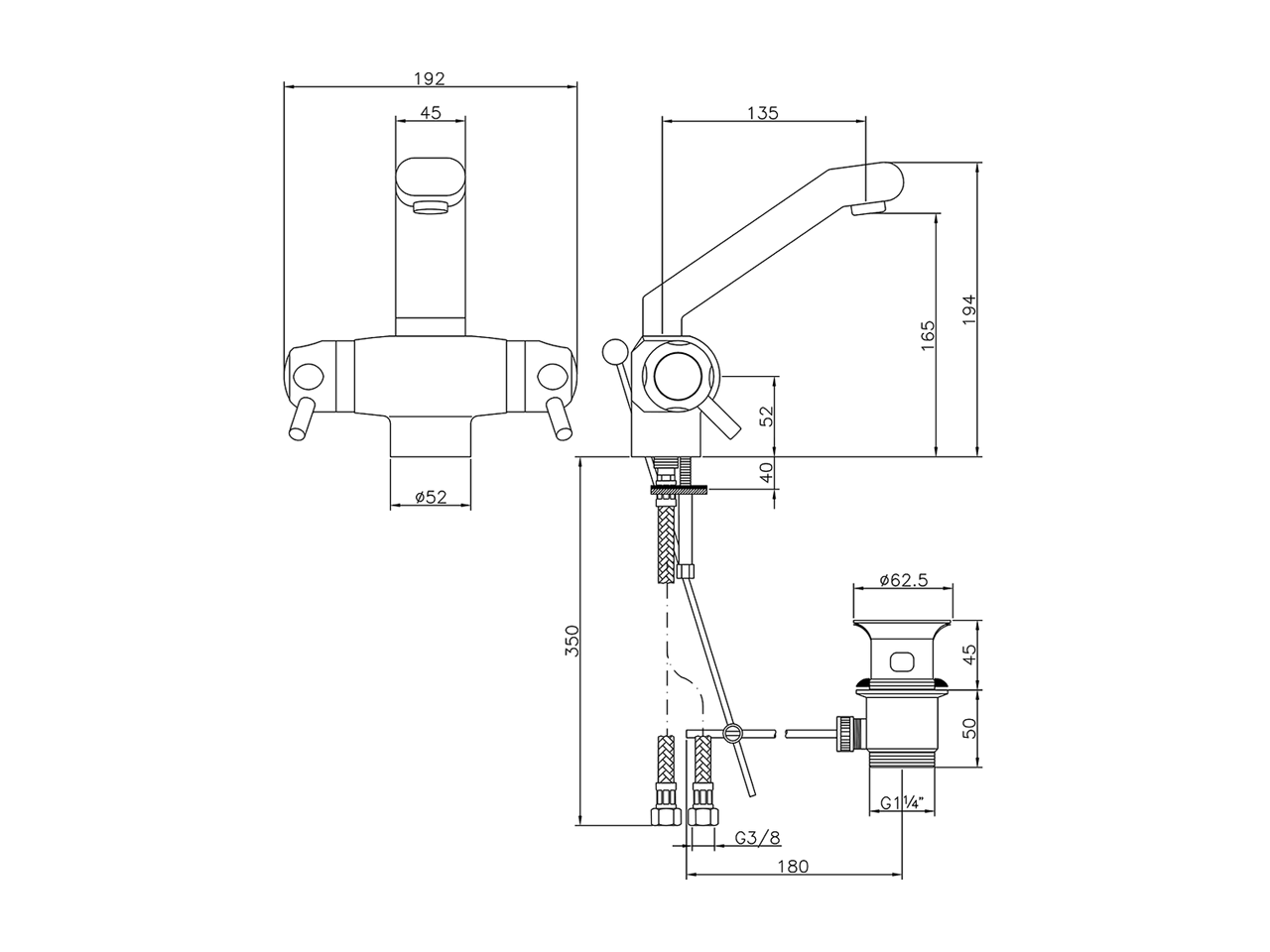Lavabo termostático,con desagüe 1"1/4,latiguillos acero G.3/8"