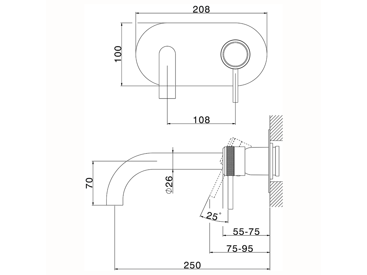Parte externa monomando lavabo de pared,sin parte empotrada,caño L.250 mm,para art.