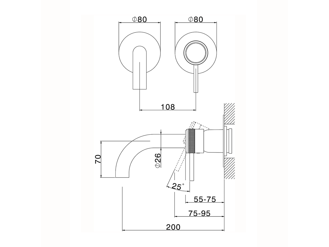 Parte externa monomando lavabo de pared,sin parte empotrada,caño L.200 mm,para art.