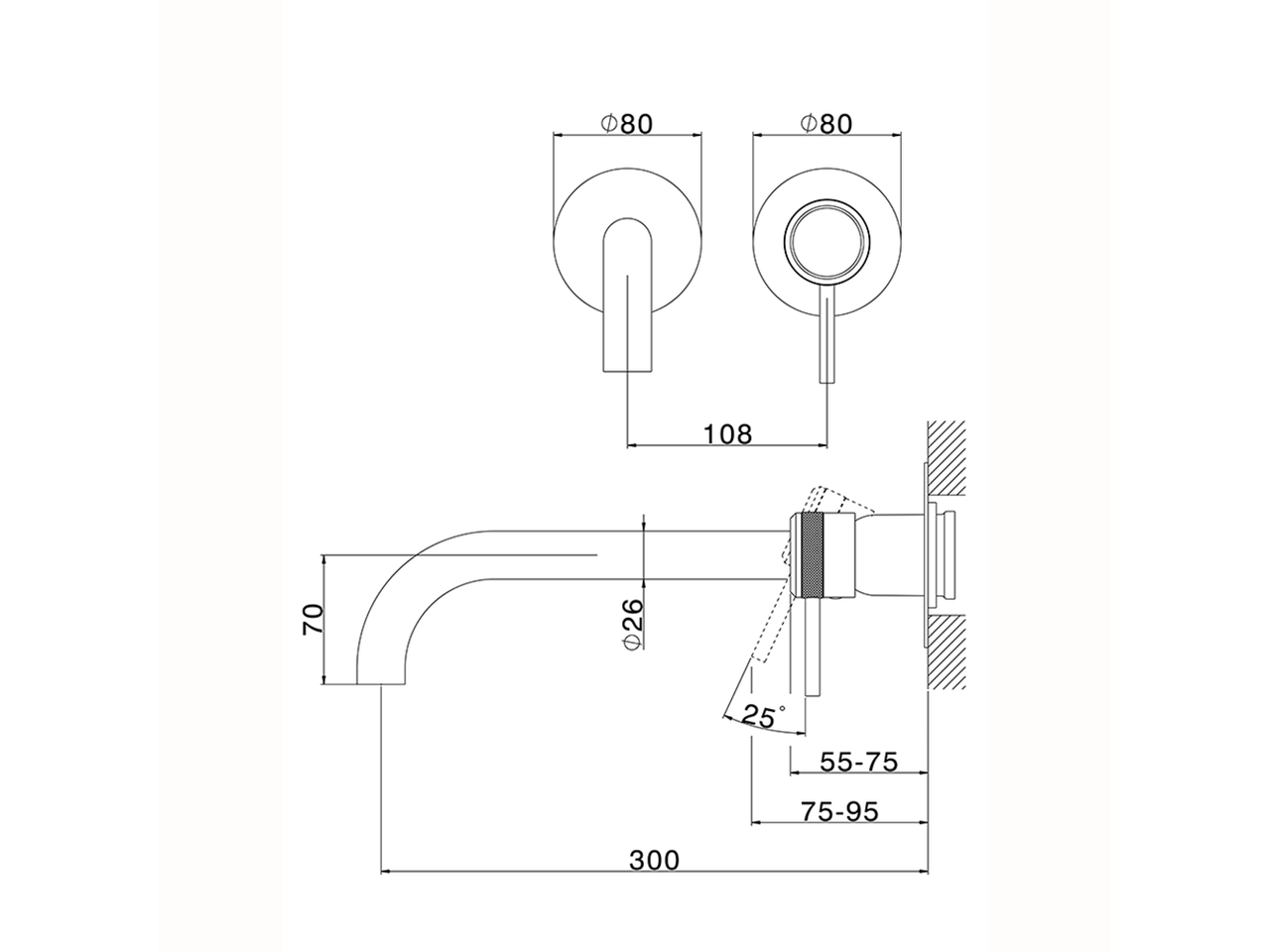 Parte externa monomando lavabo de pared,sin parte empotrada,caño L.300 mm,para art.