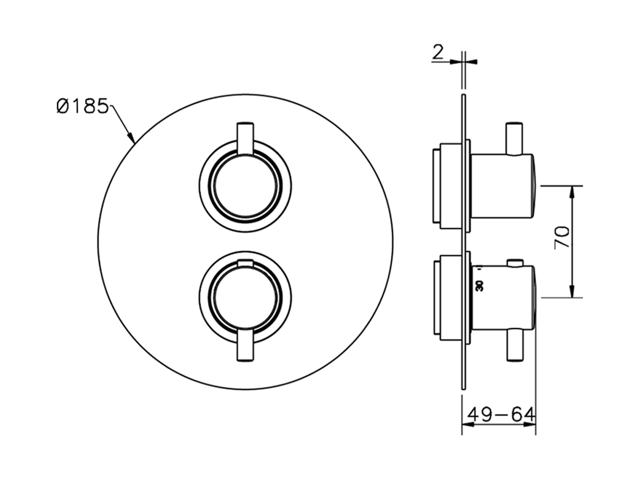 Parte externa termostático ducha emp. 2 salidas THERMO_MT018100 - v1