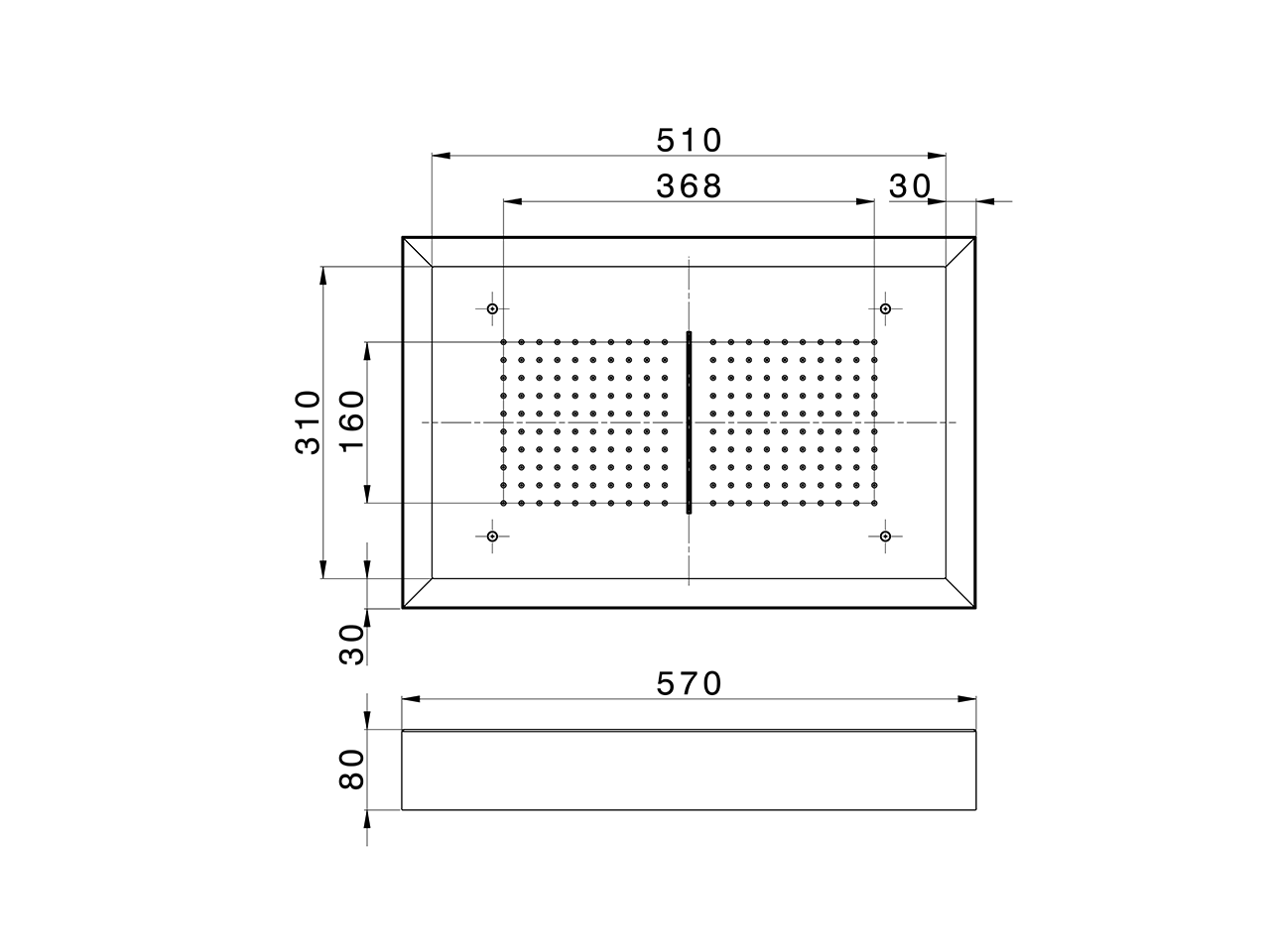 Rociador de techo con cromoterapia 570x370 mm,con cubierta exterior blanca,funciones lluvia, cascada, cromoterapia,con teclado empotrado,acero inoxidable AISI 304