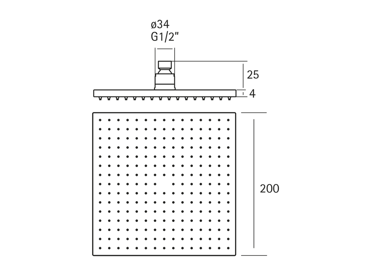 Rociador ducha,cuadrado 200x200x4 mm,Inox AISI 304